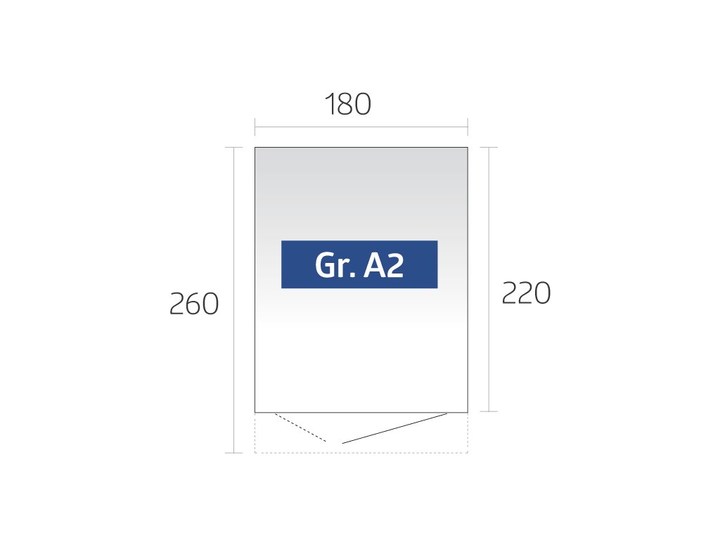 Vnější rozměry vč. převislé střechy š x h x v (cm): 180 x 260 x 218 (v nejvyšším místě)