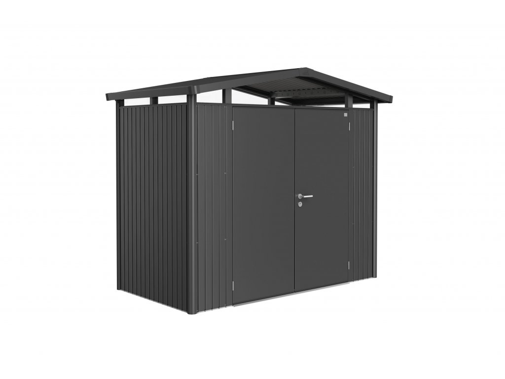 Biohort zahradní domek PANORAMA P1, tmavě šedá metalíza, s dvoukřídlými dveřmi