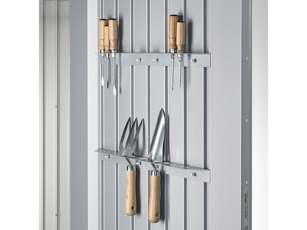 • 4 držáky zahradního náčiní (pro zavěšení lopat, hrábí, hadic apod.)
