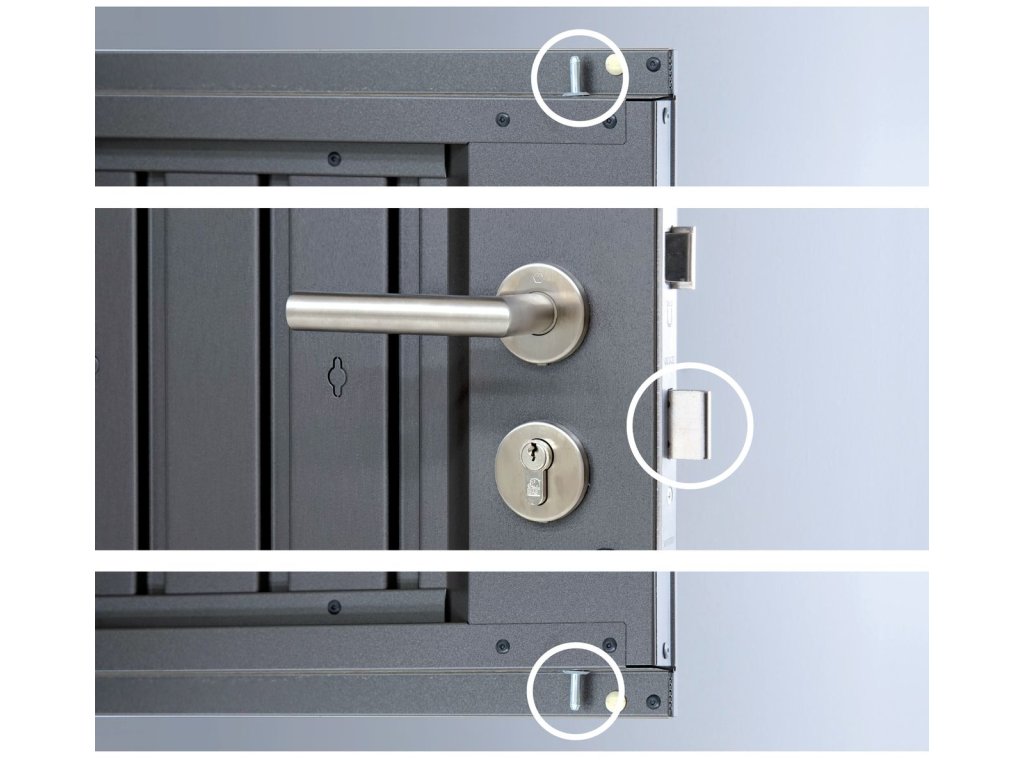 • Trojnásobná závora s rukojetí z nerezové oceli, cylindrickou vložkou a náhradním klíčem