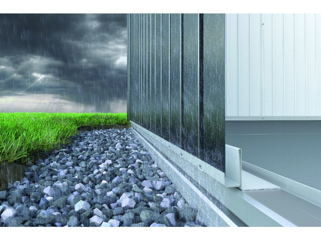 - integrovaná vodní bariéra řeší odtok vody a tím zabraňuje průniku vody do domku